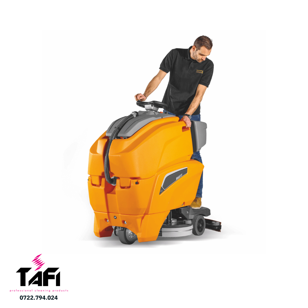 Asigură același confort și performanțele unei mașini cu om la bord, curățand cu o manevrabilitate și vizibilitate fără precedent datorita faptului că operatorul este in spatele mașinii, nu in față, ca si la modelele obișnuite cu om la bord.